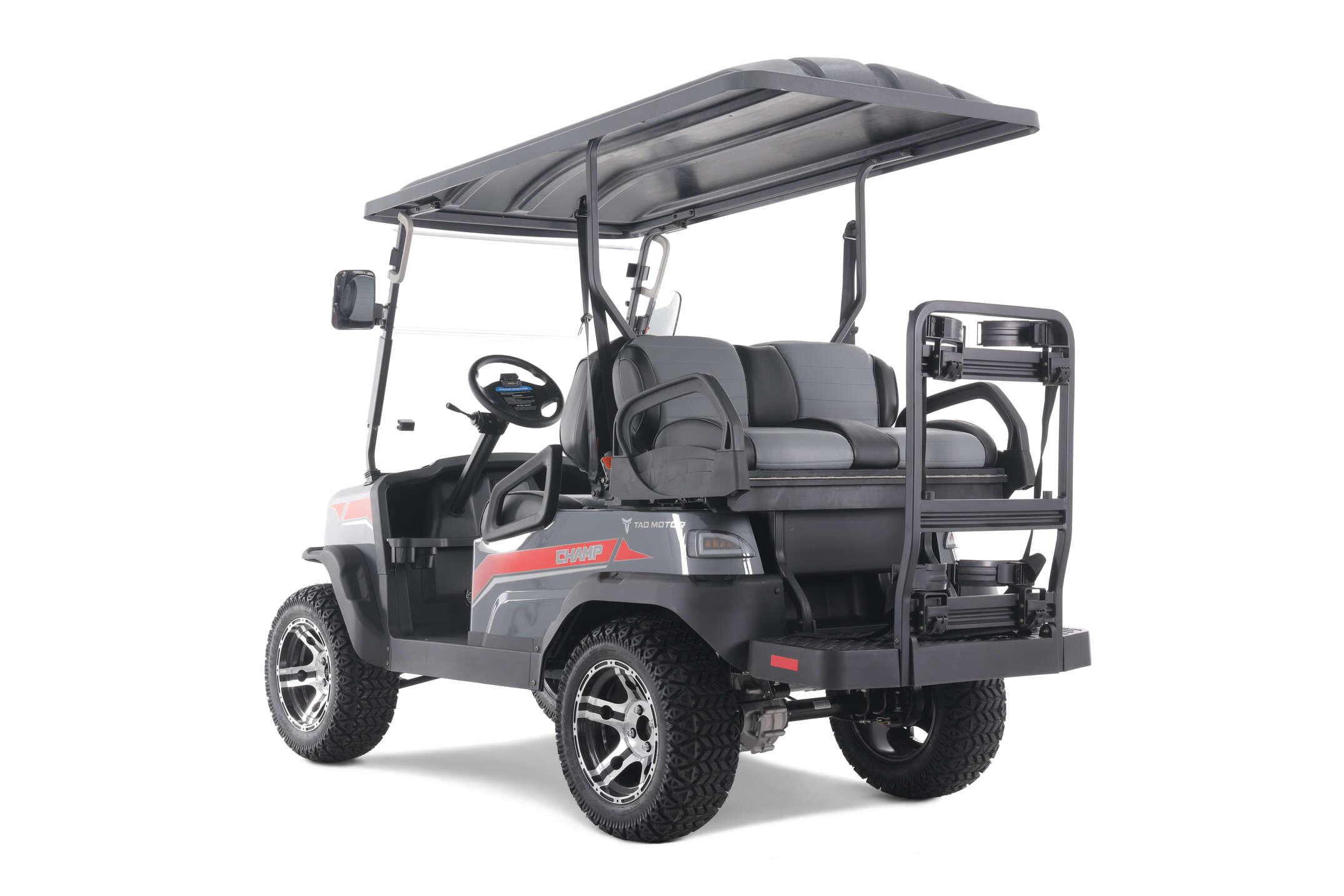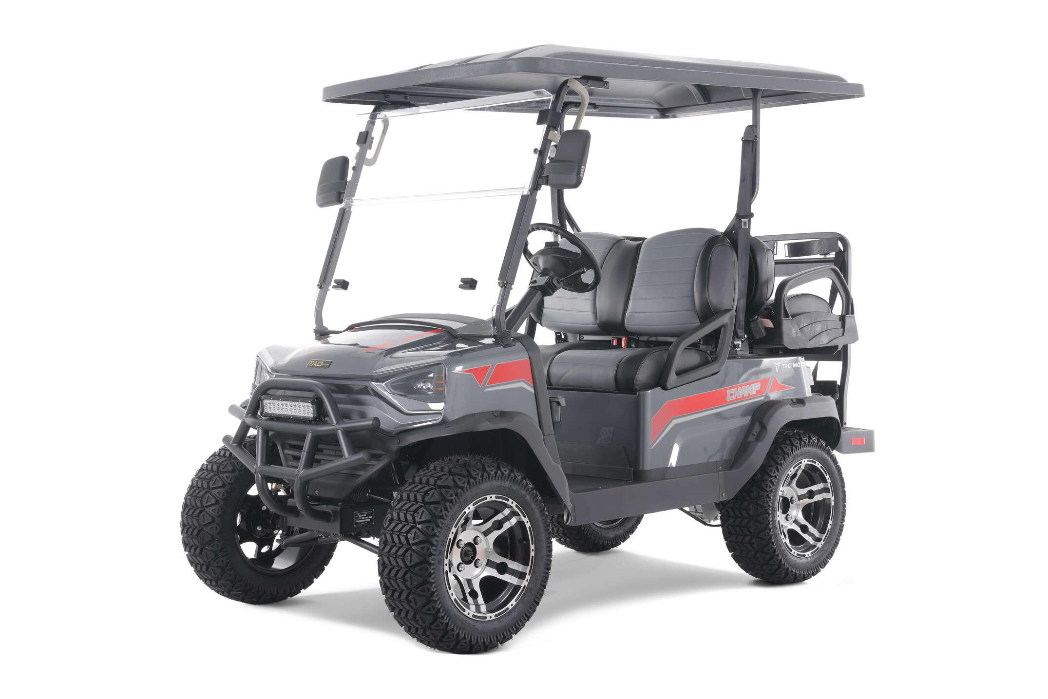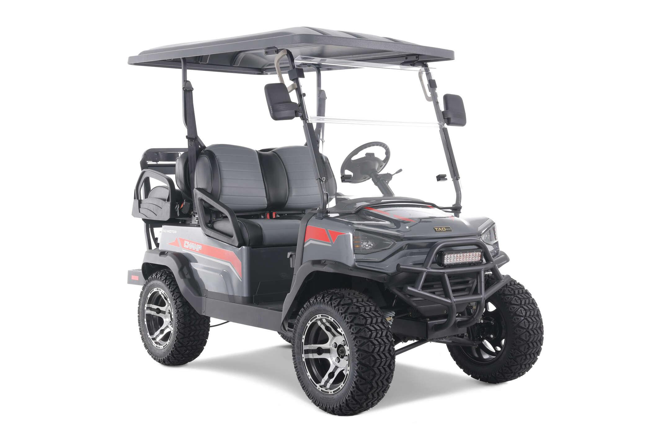 You asked. We listened. Tao Motor now offers a completely new riding experience for enjoying the great outdoors. Introducing the Champ Golf Cart! All new for 2023, the Champ is the first of its kind for the Tao Motor brand. Whether it is family night or date night, the Champ allows for easy riding with plenty of featu